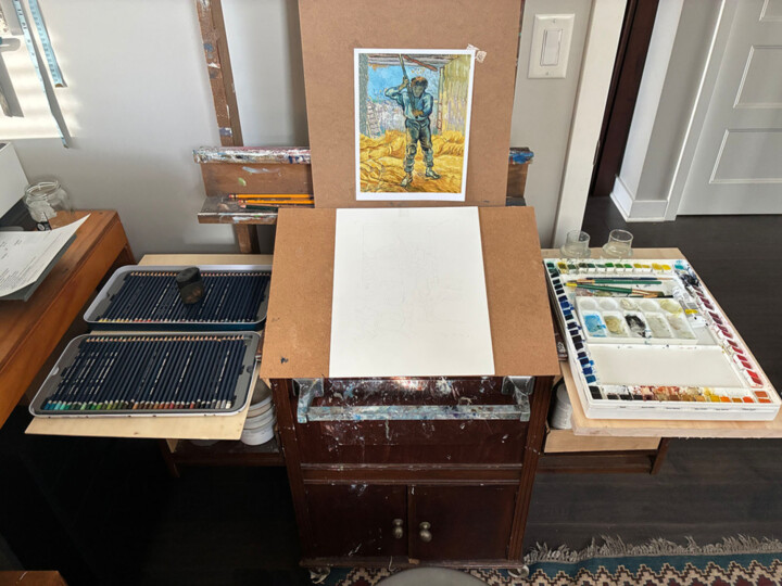 A sure sign we are getting back to normal, the Jersey City Artists Studio Tour, canceled last fall, has returned. Once again I opened my studio for tours (vaccine and mask required) and had about 20 people visit (and that’s considered pretty good for a studio not in one of the big artist studio buildings downtown). Certainly good for the ego.